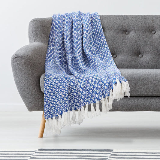 50x60 100% Cotton Crochet Throw Blanket With Fringe